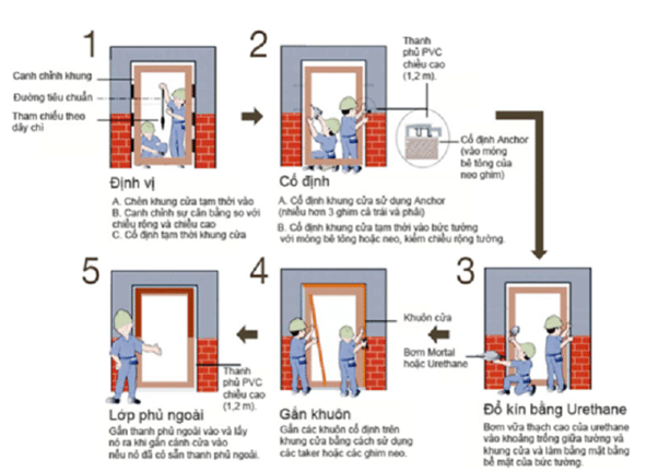 3. Quy trình lắp đặt cửa phòng ngủ nhựa Hàn Quốc gồm mấy giai đoạn