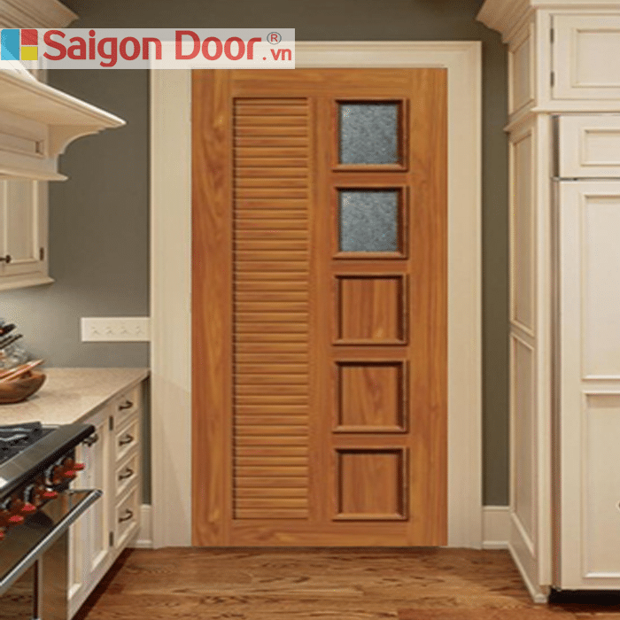 Thiết kế độc đáo, bao gồm các ô cửa panel kết hợp cùng fix ô kính, mẫu cửa WC này là lựa chọn hoàn hảo cho những ai đang tìm kiếm mẫu cửa WC mới lạ để làm điểm nhấn cho không gian. Màu sắc cửa mẫu cửa này cũng khá trang nhã, phù hợp với nhiều loại nội thất khác nhau.
